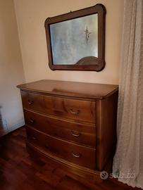 Camera matrimoniale in legno massello prodotta da artigiani veneti con n. 2 comodini, 1 comò a 3 cassettoni lunghezza mt 1,20, 1 specchio, 1 letto 172 x 210, 1 armadio sagomato lunghezza mt 2,95 H mt 2,45 al centro e 2,25 ai lati tutto in legno. Escluso reti e materassi. Buonissimo stato, ben conservato. € 1.000,00 da smontare e ritirare sul posto € 1.300,00 da smontare