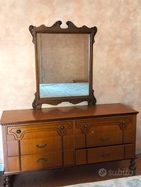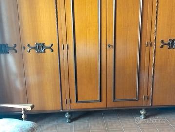 Camera da letto anni 70 stile barocco in noce vendo completa con finiture curate ttime condizioni Armadio con rialzi superiori ante con cornici maniglie lavorate letto testata decorata struttura solida comodini con cassetti scorrevoli settimino 7 cassetti specchio coordinato Misure Armadio alto 2.98/lungo 3 metri Profondo cm 60 /letto largo 1.70/lungo 2.10/comodini largo 33.5/ lungo cm 57/ Comò lungo 1.55 largo cm 50 prezzo trattabile. Smontaggio trasporto sono a carico dell"acquirente
