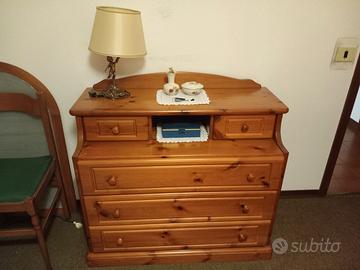 Vendo camera da letto in pino, completa di armadio, letto matrimoniale completo di materasso nuovo, comodini e comò.