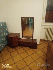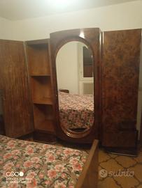 completa di letto con testata, ampio armadio a 3 ante e specchio centrale, 2 comodini, toilette con specchio e comò con ampia cassettiera... molto bella.