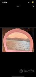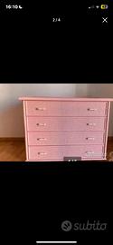 Camera da letto in rattan e paglia di Vienna color rosa . Letto con testiera, cassettone con specchio soprastante e due comodini.Ritiro in sede.