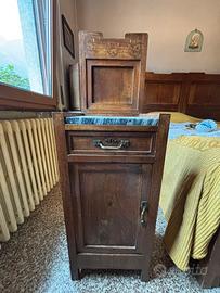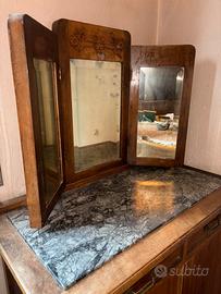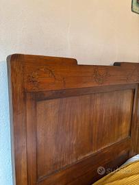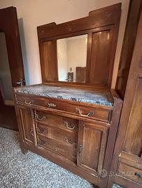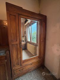Vendo camera da letto in stile antico in legno con intagli decorativi completa di letto matrimoniale, due comodini, armadio con specchio, cassettiera con specchiera dotata di multipli cassetti con maniglie in metallo, toeletta con specchio reclinabile. I pezzi possono essere venduti anche singolarmente.