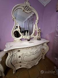 Vendo camera da letto in stile Barocco, in ottime condizioni, completa di: letto con rete, materasso escluso, sedia imbottita, due comodini con specchi, comò con specchiera, armadio a sei ante. La camera è già stata smontata. Ritiro a carico dell’acquirente presso Sant’Angelo All’esca (AV)