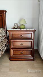 Vendo camera da letto in stile classico. Misure del letto: L: 2,054m; H: 1,194m; P: 0,599m. Misure armadio: L: 2,359m; H: 2,496m; P: 0,629m. Misure comò: L: 1,303m; H: 0,879 (senza specchio). Specchio: H: 1,013m; L: 0,748m. Misure comodini: L: 0,503m; H: 0,589m; P: 0,433m. Ottime condizioni. Se interessati, disponibili anche le sedie. Prezzo: 1000€ trattabili.