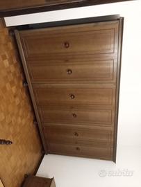 Camera da letto in legno stile Spagnolo anni 60, produzione italiana, composta da: - 1 letto matrimoniale; - 1 armadio a sei ante con tre cassetti e specchi; - 1 settimanale con specchio; - 2 comodini; - 2 poltrone. Ideale per una casa di villeggiatura o per un B&B in stile 😀 Smontaggio e ritiro a cura dell'acquirente.