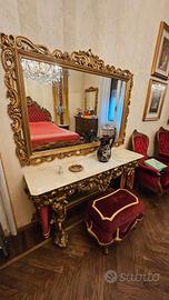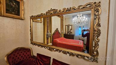 Vendesi camera da letto con chaise longue e specchi letto dimensioni : testiera 180 x 180 cm lunghezza 215 cm mobile toeletta: lung 169 x prof. 47 x h 75 cm specchio: 160 lung x 120 h cm chaise longue: lung 195 x 72 cm x 98 h specchio sopra chaise lungue: lung 210 x 110 h prezzo da concordare