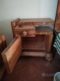 Camera da letto inizio '900 composta da: Cassettiera con specchio (larghezza 133, profondità 55, altezza con specchio 170) 2 comodini (larghezza 55, profondità 34, altezza 68) specchiera (larghezza 113, profondità 53, altezza 163) Letto matrimoniale (larghezza 165, profondità 210, altezza max 140) Possibilità di acquistare ance un solo elemento (prezzo concordabile)
