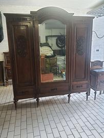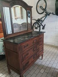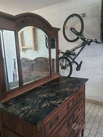 Camera da letto completa con pezzi originali, marmo e specchi. Intarsiata