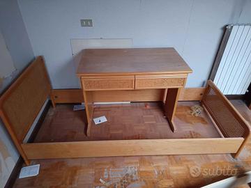 Vendo camera da letto singola al completo, tutto Ottimo Legno, compresa di scrivania, comodino, lampada, struttura letto e rete.. il letto ha le misure standard di un letto singolo.. ritiro a carico dell'acquirente, non spedisco, si trovano a Raiano (AQ) sono già smontate e pronto per il ritiro