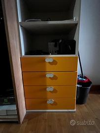 Armadio con due ante contenenti due vani porta stampelle + armadio con due ante superiori con porta vano stampelle e cassettiera contenente 4 cassetti inferiormente.