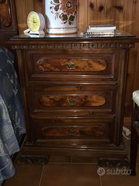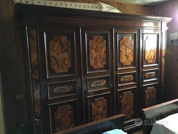 Camera da letto in noce, costituita da cassettiera (138x55 cm), armadio (261x62 cm), n. 2 letti (215x100 cm, h testiera 130 cmh piedi=75 cm), n. 2 comodini (60x37 cm, h=72 cm)