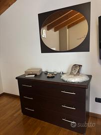 Camera da letto matrimoniale completa: armadio 6 ante ( altezza 2,40 lunghezza 2,70 larghezza 56 cm ), 2 comodini, comò 3 cassetti con specchiera, letto contenitore con materasso.