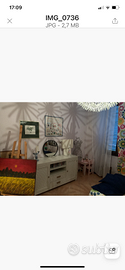 Per trasloco vendo camera da letto ragazza: letto francese con materasso, libreria e cassettiera con ante. Specchio, tende, lampadario e tappeto