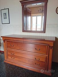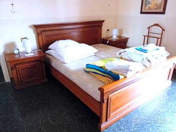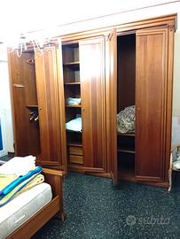 Armadio: tre ante completo di cassetti, ripiani, specchio e portabiti misure: H. cm. 252 - L. totale cm. 291 - P cm. 62 Comò: 3 cassetti capienti + 2 piccoli misure: H. cm. 83 - L. cm. 142 - P. cm. 55 Specchio Letto matrimoniale con doghe: misure Larghezza cm. 180 - Lunghezza cm. 210 2 Comodini: un cassetto + un anta misure. H. cm. 60 - L. 62 - P cm 45