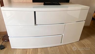 Camera da letto di ottima qualità made in italy con 3 color Bianco lucido con contrasti a specchio, Armadio a 3 ante scorrevoli 2,90 largezza 2,50 Altezza ,65cm profondità.