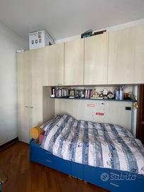 Vendo camera da letto composta da letto con cassettiera,armadio e mensola. L’armadio è un 305x60x260, il letto ha una profondita di 106cm. Smontaggio e trasporto a carico dell’acquirente.