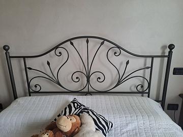camera completa con 1 cassettone ( da 4 cassetti) + 2 comodini ( da 3 cassetti ) + specchio e letto in ferro battuto e rete in doghe di legno