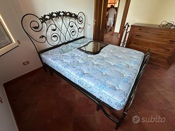 Vemdesi camera da letto in ottimo stato, in stile classico. Ottimi materiali e finiture L’annuncio comprende: -letto in ferro battuto con aplique e comodini in coordinato al letto -lampadario in coordinato -Specchio da muro in coordinato -Comó in legno (non compensato) -armadio a 4 ante in legno (no compensato) come da foto Il tutto é gia smontato e a piano terra