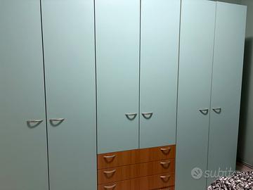 Vendo arredamento per camera da letto, composto da letto con rete e materasso, comò con 4 cassetti, armadio da 6 ante e due comodini uguali. I pezzi sono tenuti molto bene, pari al nuovo.