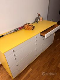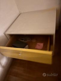 Svendo per trasloco camera da letto marca DEL TONGO materiale laminato colore bianco/giallo (comodino, cassettiera, armadio) praticamente come nuovo tranne una delle due maniglie dell'armadio staccato ma si può aggiustare. comodino: altezza 45 cm, larghezza 50cm, profondità 60 cm 2 cassetti cassettiera: altezza 75 cm , larghezza 1,50 m, profondità 50 cm 10 cassetti armadio: altezza 2,10 m, larghezza 2,50 m, profondità 60 cm spazio per abiti grucce ecc. ecc. contattare telefonicamente o su whatsapp.