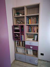 5) Libreria con cassetti e cassettoni, misure 103x228x43.5 (nel punto più profondo).