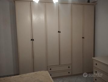 Vendo come da titolo,camera da letto matrimoniale completa..2 comodini, comò specchio, armadio con cassetti,letto completo di materasso e rete ortopedica..(le lampade sui comodini e comò non sono in vendita)
