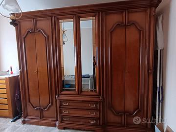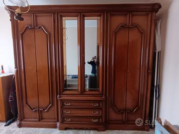 Vendo camera da letto matrimoniale in legno, completa di due comodini, comó, armadio sei ante e letto matrimoniale.