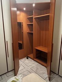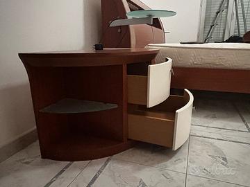 Camera da letto con cabina armadio munita di specchio e luce, testata del letto con scomparti interni, letto con tavolini da colazione in vetro e comodini con due cassetti. Prezzo leggermente trattabile.