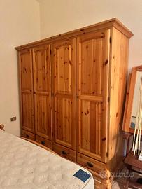 A causa scarsissimo utilizzo vendo camera da letto matrimoniale in legno massello colore chiaro completa di: testata, pediera, fasce laterali, rete ortopedica con doghe larghe in legno, materasso ortopedico, comodini con cassetto, como'/ cassettiera a 4 vani, specchio, armadio a 2 ante e 2 cassetti alla base. tutti gli arredi sono in legno massello.