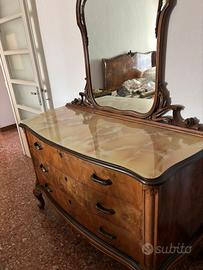 Comò 3 cassetti con specchio: lunghezza 130 cm, altezza 92 cm, profondità 55 cm. Altezza specchio 110 cm.