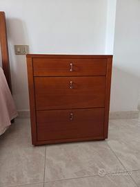 Vendo set camera da letto in legno color ciliegio/noce, come da foto, in buone condizioni e ben tenuto. Linea semplice e resistente, ideale per seconda casa, stanza ospiti o camera principale.