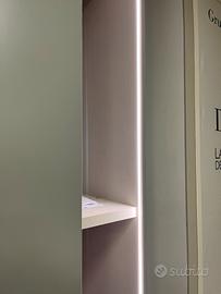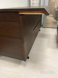 Camera NUOVA armadio due ante scorrevoli laccato opaco con vetro bronzato con luci interne lunghezza 280 altezza 255 - letto con testata imbottita e con 2 comodini sospesi laterali misura: larghezza 297 lunghezza 245 e comò in rovere moka primo ripiano estraibile più 6 cassetti misure: lunghezza 156 profondità 56 altezza 73