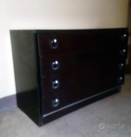 Camera da letto matrimoniale come nuova, in legno laccato nero, stile moderno, completa di comodini mobile ad angolo e comò