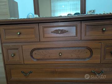 Armadio 6 ante, letto, Como 4 cassetti più ribalta, Specchiera, 2 comodini, 1 poltrona.