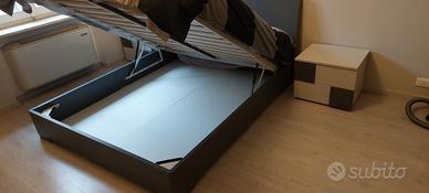-letto con contenitore e rete a doghe in legno - L 214 cm e P 171,5 cm