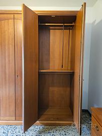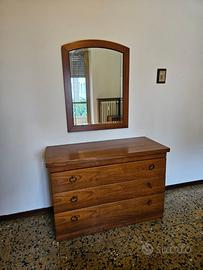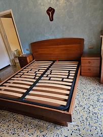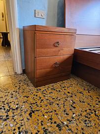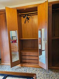 Camera da letto matrimoniale in arte povera così composta: Letto matrimoniale con due cassetti lato pediera, due comodini con due cassetti, comò con tre cassetti, specchiera, armadio a sei ante.