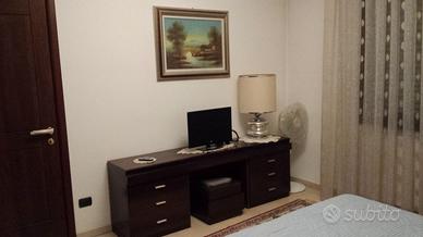 Camera da letto matrimoniale in noca composta da armadio a 6 ante lunghezza cm 300 - altezza cm. 257 - profondità cm 60 - con internamente cassettiera e ripiani como con 46 cassetti e specchiera - letto con rete e 2 materassi con 2 comodini vendo