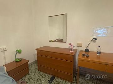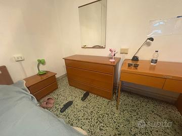 La camera è composta da letto matrimoniale, incluso materasso, n. 2 comodini, comò, guardaroba a 6 ante ( n. 2 ante dotate di specchio) Lo smontaggio ed il trasporto è a carico dell'acquirente