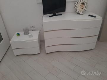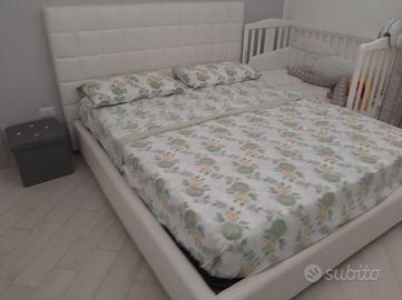 Camera da metto bianca, letto marrimoniale, due comodini, comó e armadio scorrevole con specchio da 4 metri. Pari al nuovo