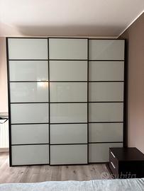 Vendo a causa di trasferimento camera da letto matrimoniale comoleta di letto, armadio, comodini e cassettiere. Legno wenge. Disponibile di marzo 2026 Smontaggio e traslorto a carico dell’acquirente. Disponibile per visionarla si appuntamento.
