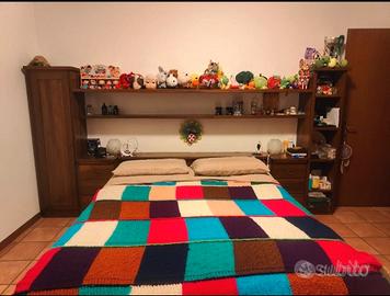 Vendo camera matrimoniale composta da armadio angolare, letto a cassone e con mobile e testata con ulteriore spazio dove poter mettere la roba all'interno e rete con doghe, vendo a causa del cambio arredamento, il costo è trattabile.