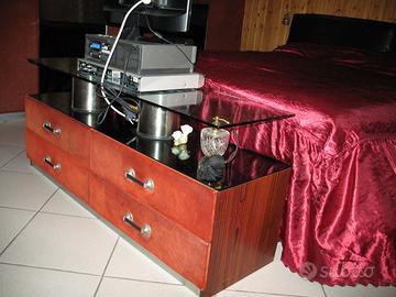 Camera da letto creazione Radaelli, originale anni '70, composta da armadio sei ante, letto con testa letto in cuoio, due comodini, mobile fondo letto. Superfici in pelle scamosciata.