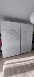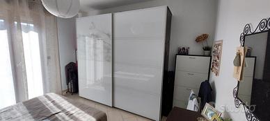 vendesi camera da letto matrimoniale ( armadio si vende anche separato). venduto*Letto matrimoniale colore wenge con vano contenitore Venduti. *2 comodini colore wenge profondità 53cm altezza 40cm lunghezza 50cm vanduta *cassettiera color wenge profondità 55cm lunghezza 110 cm altezza 75cm *armadio Ikea con ante scorrevoli in vetro bianco e struttura color wenge dentro completata da cassetti scorrevoli, aste per appendere e ripiani. venduto anche separatamente a 250euro altezza 235cm lunghezza 250cm profondità 60cm