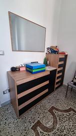 Vendo camera da letto matrimoniale modello Erika di Mondoconvenienza colore Noce Stelvio / Nero acquistata e montata a Luglio 2024 e non presenta danni o problemi. La camera comprende: - Letto Matrimoniale contenitore (170x197x102 cm) - 2 Comodini con 2 cassetti ciascuno (53x40x40 cm) - 1 Como (116x77x46 cm) - 1 Settimino (54x114x46 cm) - 1 Specchio (93×63×2 cm) - 1 Armadio 6 ante con chiusura ammortizzata e diversi ripiani aggiuntivi personalizzabili a piacere (274x250x60 cm) Sono disponibile per qualsiasi informazioni o chiarimenti. Smontaggio e trasporto sono a carico dall'acquirente.