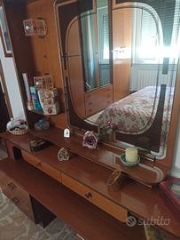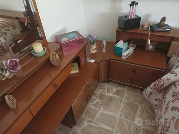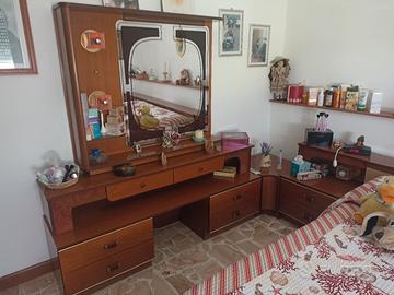 camera da letto in buone condizioni, composta di comodini con luce incorporata, letto con vano cuscini e box , giro angolo, cassettiera/toilette con luci, puff in tinta, grande armadio 4 stagioni con vetri centrali, vendo euro 300. smontaggio e trasporto a carico dell'acquirente. visibile Cengio Savona. tel 3493322319 Marco