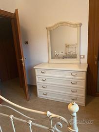 Camera da letto matrimoniale in stile Shabby Chic con giroletto in ferro battuto. Fabbricata in Italia. Misura armadio a 5 ante circa 2,60 mt