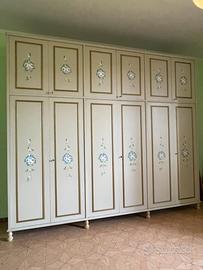 Camera da letto matrimoniale in stile veneziano composta da: - armadio 6 ante a battente Lunghezza = 3m Altezza = 2,60m Profondità = 0,55m - cassettiera 5 cassetti Lunghezza = 1,02m Altezza = 0,92m Profondità = 0,50m - n. 2 comodini Lunghezza = 0,55m Altezza = 0,62m Profondità = 0,32m - letto matrimoniale compreso di rete escluso materasso Lunghezza = 1,70m Altezza = 1,08m Profondità = 2,03m - specchio