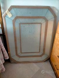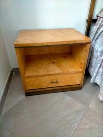 Vendo camera da letto matrimoniale anni 70(letto, comodini, specchio e cassettiera) artigianale, in radica di pioppo e ottone, costruita a mano, spessore 3 cm.