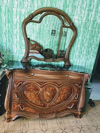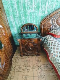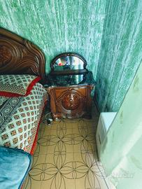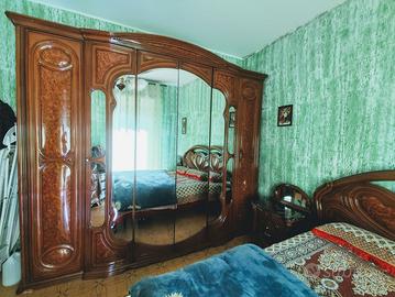Vendo camera matrimoniale con armadio a 6 ante con specchi 300x60x260h, struttura letto con rete a doghe, ( no materasso) 2 comodini, comò con ripiano in marmo e specchio.