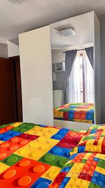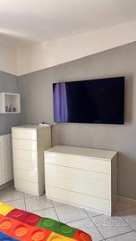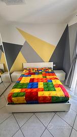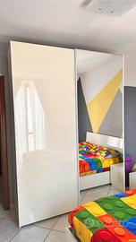 Vendo camera da letto matrimoniale acquistata nel 2023, modello laccato bianco, completo di 2 comodini capienti con due cassetti per ognuno, 1 armadio con due ante scorrevoli di cui un anta con specchio, 1 mobile composto da sette cassetti, 1 comò grande composto da quattro cassetti ed 1 letto contenitore SENZA MATERASSO.